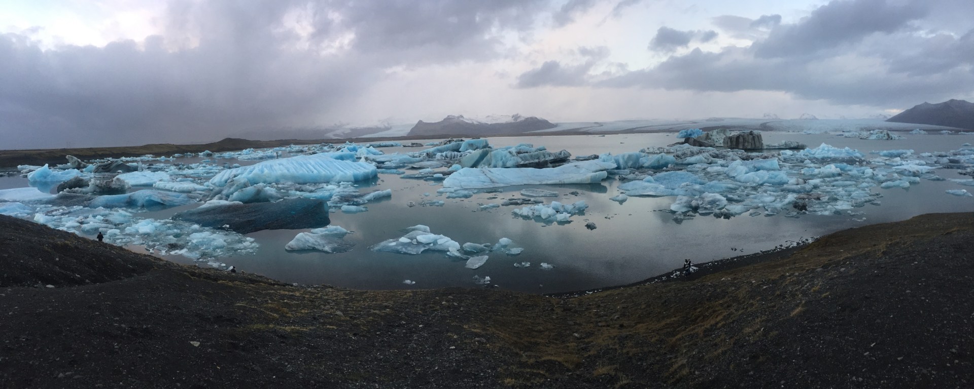 - Stop A (underneath Stop B on the map): Jökulsárlón Glacier Lagoon. One of the coolest things I’ve seen. The lake was once part of a glacier and has been slowly expanding over the years as the glacier melts. There are large chunks of blue, luminous glacier (again due to the silica content) floating in the lake like icebergs.