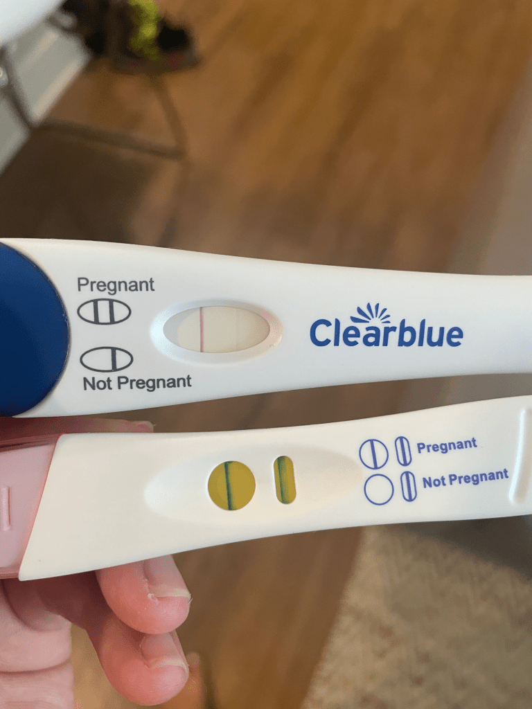 I had a feeling something was up since I had been tracking my cycle. Hoch wasn’t too worried about it, he assumed it was probably a false alarm. I kept talking about it and he was finally like go ahead and take the test!