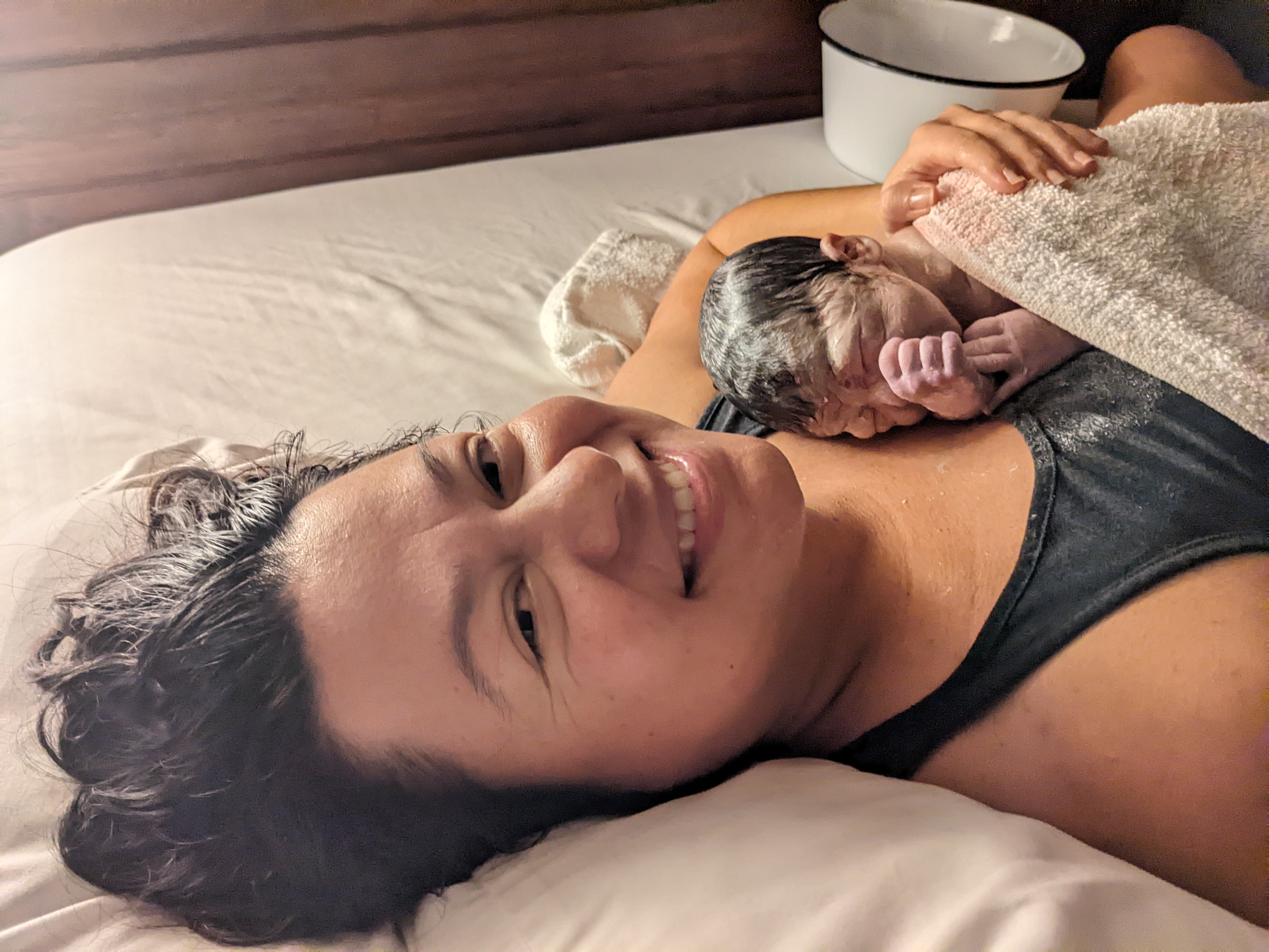 After that, my midwife told me she wanted me to listen to my body and push as I felt called to. So that’s what I did. And Baby Shin was born around an hour later at 11:45pm weighing 7lbs even!